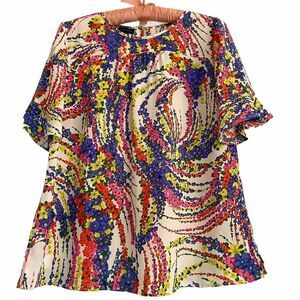 Talbots Rainbow Floral Swirl Short Sleeve Top S
