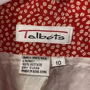 Talbots Red & White Print Silk Blazer,Light Shoulder Pad,Button front closure.EUC.Approx measurement Pit to Pit 20”,Length 27.
