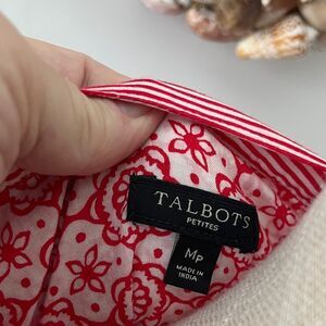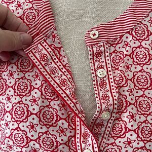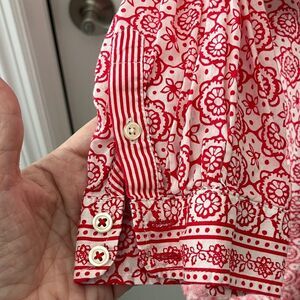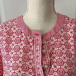 Talbots Red and White Floral Stripes &Polka Dots Popover Blouse