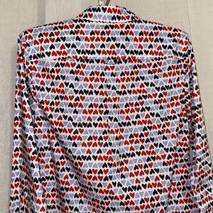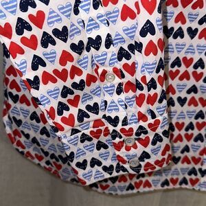 Talbots S All American Hearts Button Front Collared Long Sleeve Shirt
