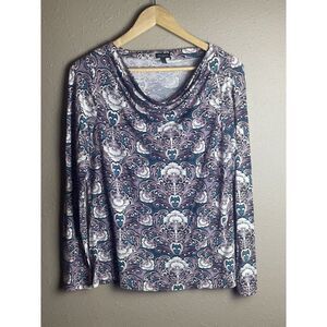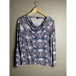 Talbots Scoop Neck Cowl Neck Floral Blouse Size L