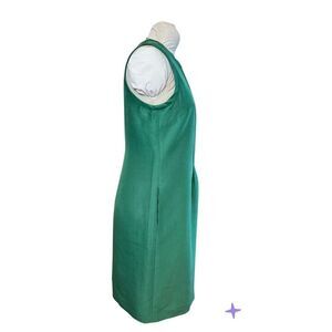 Stunning vintage silk blend shift dress by Talbots. Sleeveless but can be worn with a shirt underneath. Hidden button placket. Side zip. Kelly Green. Size 12.