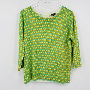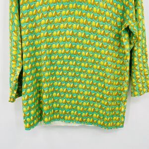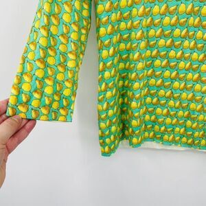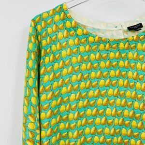 Talbots Size Large Petite Blue Pear Novelty Print Thin Knit Button Back Sweater