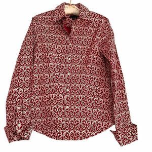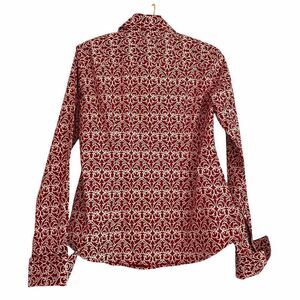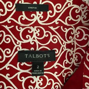 Talbots Stretch Cotton Red White Scroll Blouse 2