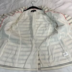 Talbots Stripe Waffle Stitch Blazer White Blue Sz 10