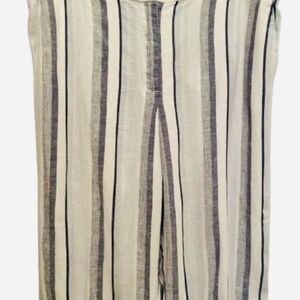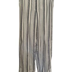 Chic linen pants with vertical stripes. Features a stylish white and blue design. Note these pants do no have the leg pocket. Great for warmer weather!
