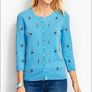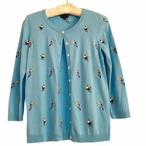 Talbots Toucan Embroidered Blue Cardigan Petite
