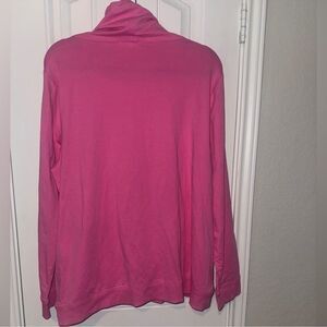 Vibrant pink top with a cozy cowl neck. Features a stylish drawstring. Please disregard orange mark from phone picture, there are no marks or damage to this sweater.