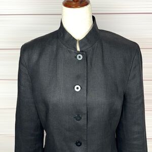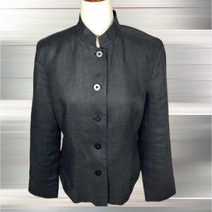 Talbots Vintage Charcoal Irish Linen Stand Collar Blazer Jacket Size 8