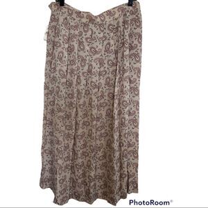Talbots Vintage Beige/Burgundy Paisley Full-Length Pleated Skirt