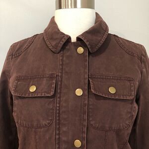 In like new condition is this Talbots waterproof utility jacket. Has lots of pockets at front. Slap buttons and zipper closure. Beautiful plaid lining.
