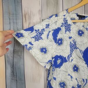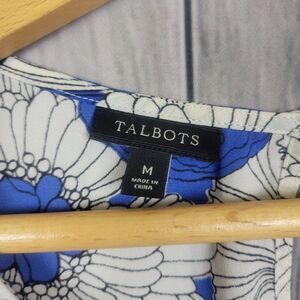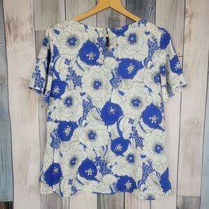 Talbots White Blue Floral Blouse Short Sleeve Top Size Medium