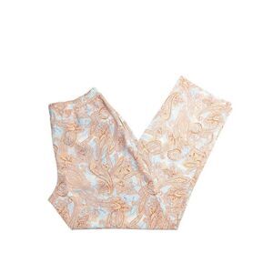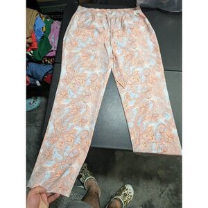 Talbots White Orange Coral Paisley Printed Elastic Drawstring Waist Pants Women'