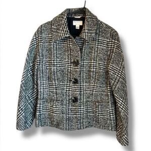Talbots Womens Black Alpaca&Wool Plaid 3 Button Blazer Coat sz 12 Career Preppy