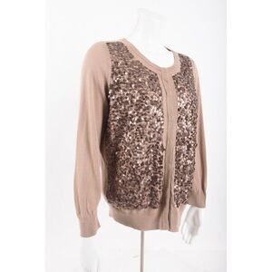 Talbots Womens Brown Sequined Cardigan Sweater 3/4 sleeves Sz US M NWT