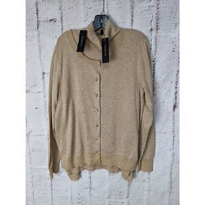 Talbots Womens Knit Good Metallic Turtleneck Sweater Button up Front Cardigan 2 Piece Set Size Lp Large Petite NWT