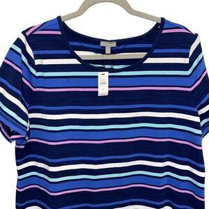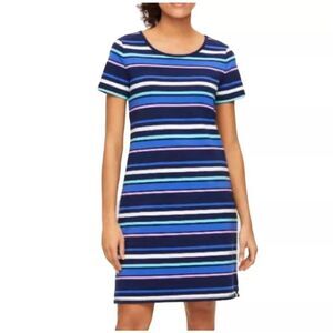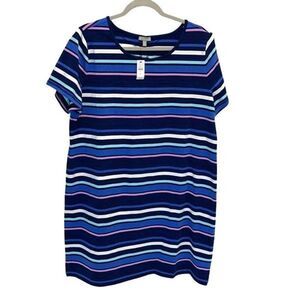 Talbots Womens Stripe Ruched Drawstring Back T-Shirt Dress Blue Pink Size 1X NWT