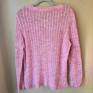 This Talbots open knit sweater in pink is a stylish and comfortable choice for women in size XL. Made from lightweight cotton, it features a crew neck and long sleeves, making it perfect for casual or travel occasions during the summer, fall, and spring seasons. The open-knit design adds a touch of texture, while the pullover style offers easy wear. With its classic and colorful theme, this sweater is a versatile and breathable addition to any wardrobe.