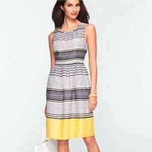 Talbots yellow, black, and white striped dress.