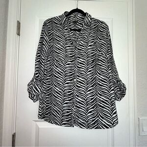 Talbots Zebra Print Button Front Roll Tab Sleeve Blouse Top