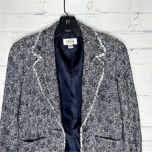 Love it! Great condition and sharp looking. Armpit to armpit is 19 inches and the length is 22 inches. It’s heavier and there is no button in the front.