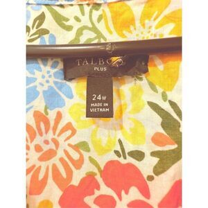 Talbots cotton multicolor dress button front belt plus sz 24W . See pictures with measurements. Gently used preowned condition. Color maybe slightly different due to light