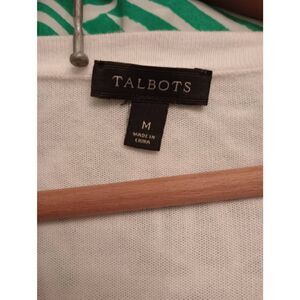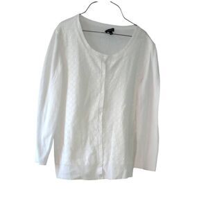 Pre-owned white Lacy patterned, long sleeve ,button down shirt by Talbots. Jersey type material button down can be worn as a shirt or a cardigan.