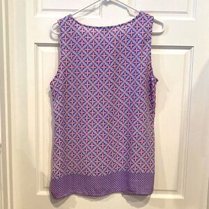 Talbots outlet, blue and pink sleeveless blouse, medium