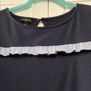 Talbot’s Petites navy long sleeve crew neck sweater size medium petite in excellent condition. Cute blue pinstripe ruffles at cuffs and across front. Top is super soft and comfy. Wish it was my size.. pit to pit approximately 19” flat