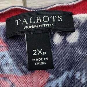 Talbots red blue 3/4 sleeve cardigan, size 2x petite button front