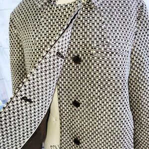 Talbots womens brown white checkered pattern wool office business jacket Size 16