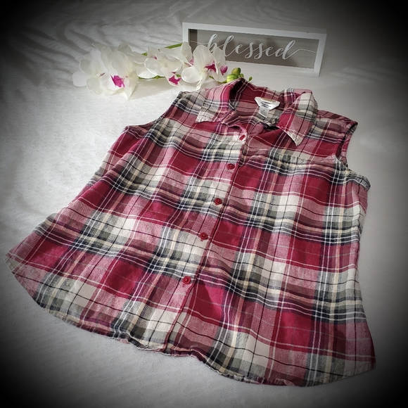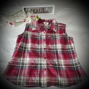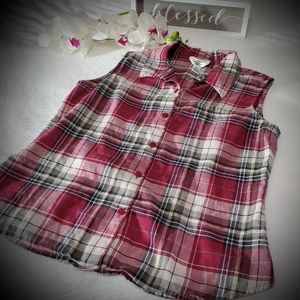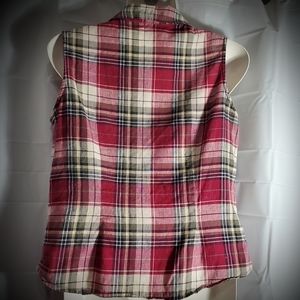 A must have for summer. Talbott Irish Linen Blend top. Plaid, button front, sleeveless & wrinkle resistant. Ready to wear in an instant with no ironing needed. Size small.
