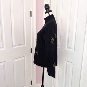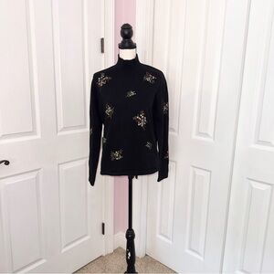 Talbotts High Neck Long Sleeve Black Mistletoe Sweater Medium