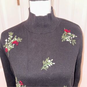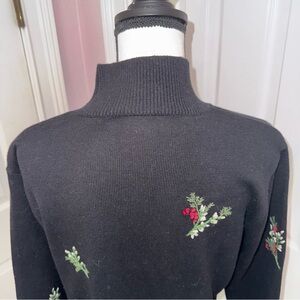 Talbotts High Neck Long Sleeve Black Mistletoe Sweater Medium. See pics for measurements. preowned, Good condition. smoke free home. bundle with other items in my closet for a discount.