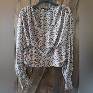 Talent Blouse Womens Size 1XL Brown Black Low V Neck Sheer Smocked Bottom Casual