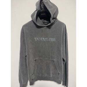 Talentless Hoodie Mens Large Gray Embroidered Logo Kangaroo Pocket Back Graphic