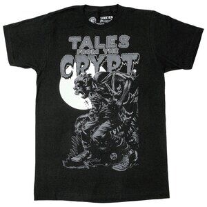 New with tags. Official licensed Tales From The Crypt Werewolf Moon Glowing Black T-shirt. Unleash the beast with this howling hot tee featuring a Werewolf from EC Comic's Tales From the Crypt, original comic art by Jack Davis. Printed on a 100% cotton mens soft feel regular fit T-shirt with glow in the dark ink. Printed in the USA. Men's sizes small, medium, large, XL, 2XL and 3XL.