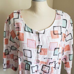 Talia Benson 100% Linen Italian Top Blouse Size XL