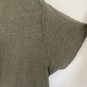This is the ultimate summer top by Talia Benson. The shirt is an olive green tunic-style t-shirt crafted from 100% Italian linen with a flowing, open asymmetric hemline; the long sides have flowing woven linen. The shirt is in great condition with minimal use; there is a small flaw in the fabric on the front of the shirt.