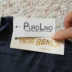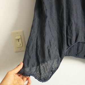 Talia Benson Tunic Top OS/L*Blue Linen Asymmetrical Hem Knit Lagenlook New