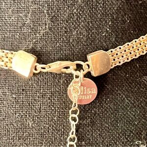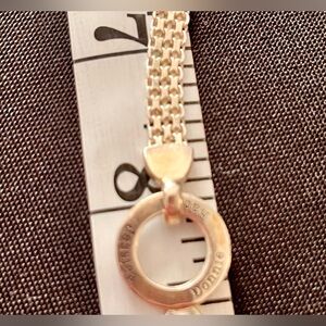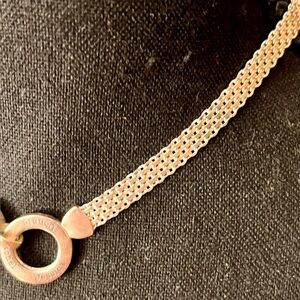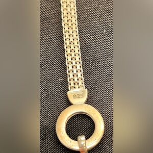 This sterling silver chain mail circle necklace adds a touch of character to any outfit. Perfect for any occasion. It is 15 inches without the extender. About 18 with the extender. It has a circle of names that are important to someone. Because of the look and the fact that it has names, I will list this below the PM recommended lowest price. This necklace is nice and carries charm and class.