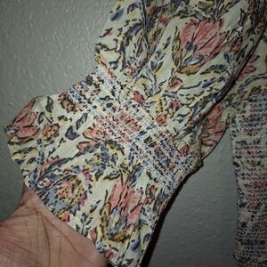 Talisman Square Neck Lotus Floral Print Smocked Firelight Cropped Top S