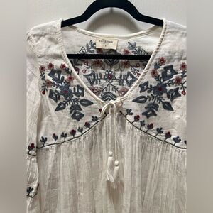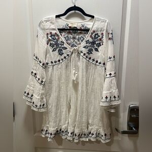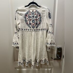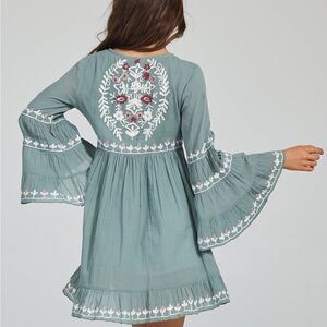 Talisman Aneesa Embroidered Tiered Bell Sleeve Tunic Mini Dress