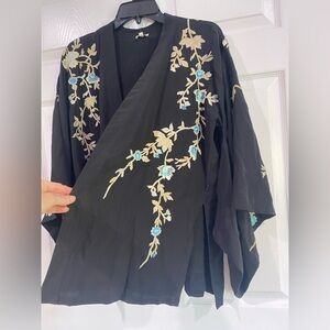 Talitha Kimono 3/4 Sleeve Silk Embroidered Floral Black Small Western Indian