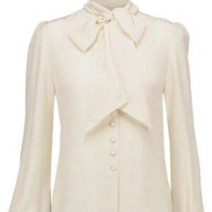 Talitha Silk Button Down Blouse w/ Bow Exaggerated Cuffs Size Medium