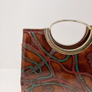 Talja Genuine Leather Handcrafted Italian Embossed Horse Pattern Bag Tan Brown