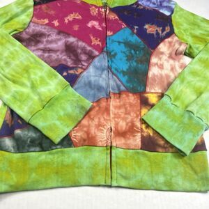 Talk Of The Walk Hooded Jacket Patchwork Boho Casual Hippie Y2K Full Zip L/ XL