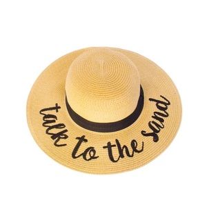 "Talk To The Sand" embroidered floppy beach hat, black ribbon band. Last pic is actual hat. No Trades, Price Firm unless Bundled. BUNDLE 3 OR MORE ITEMS FOR 15 % OFF.