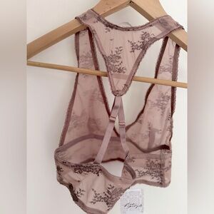 Feel flirty in this sheer mesh bralette with a sporty racerback design and sweet blooms all over.
