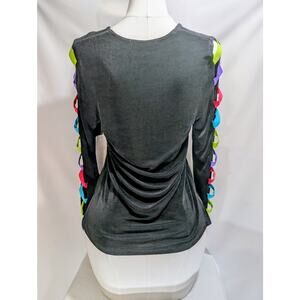 Talk of the Walk Black Multi Color Cutout Sleeve Top Small NWT
